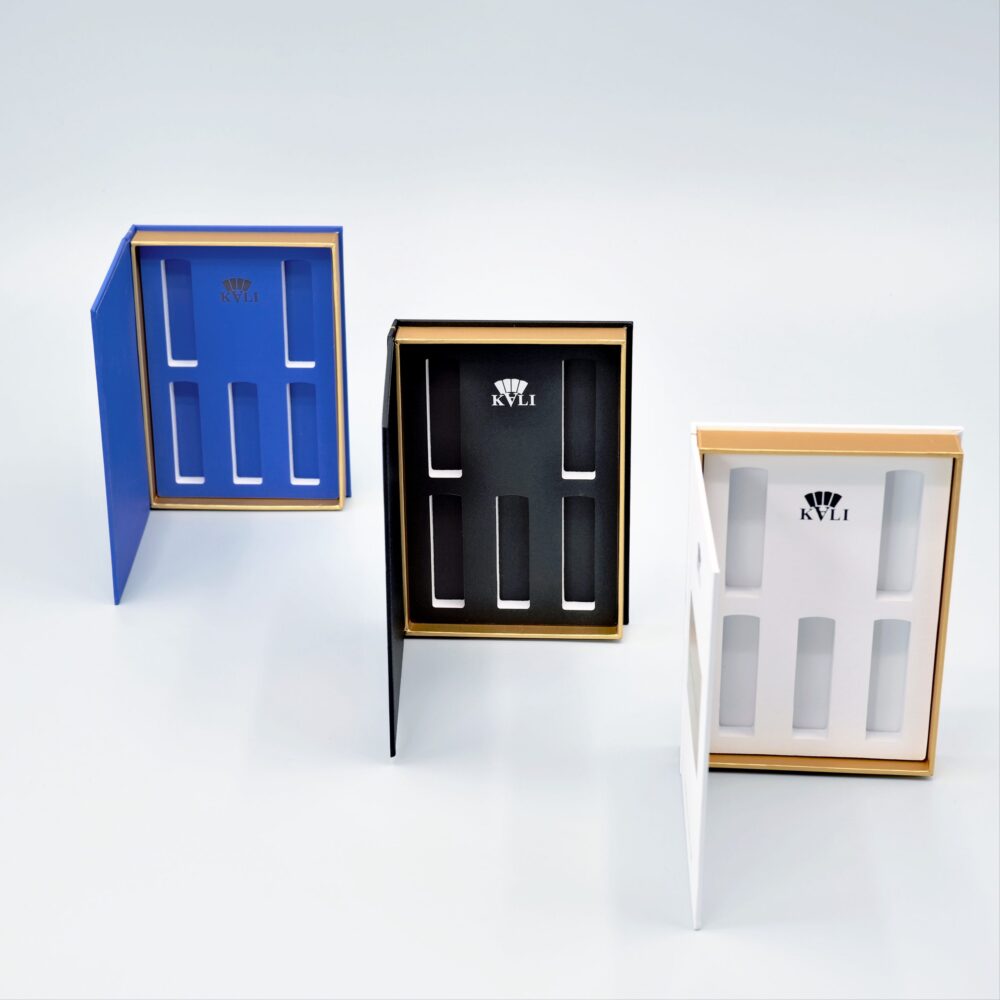 A 5-Piece Perfume Box Packaging is the perfect solution for brands looking to present their fragrance in a sophisticated and unique way. Inspired by the classic appeal of a book, this packaging design not only provides a protective case for each perfume but also creates a memorable unboxing experience for your customers.