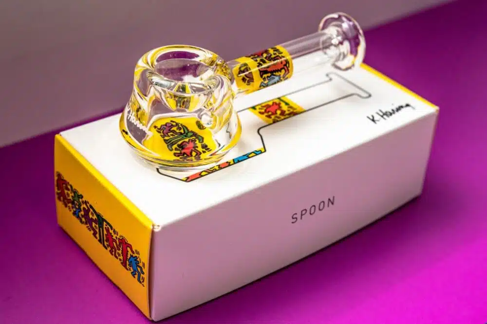 Example: A K.Haring-inspired glass box featuring sleek contours and artistic motifs, seamlessly integrating functionality with fine art.