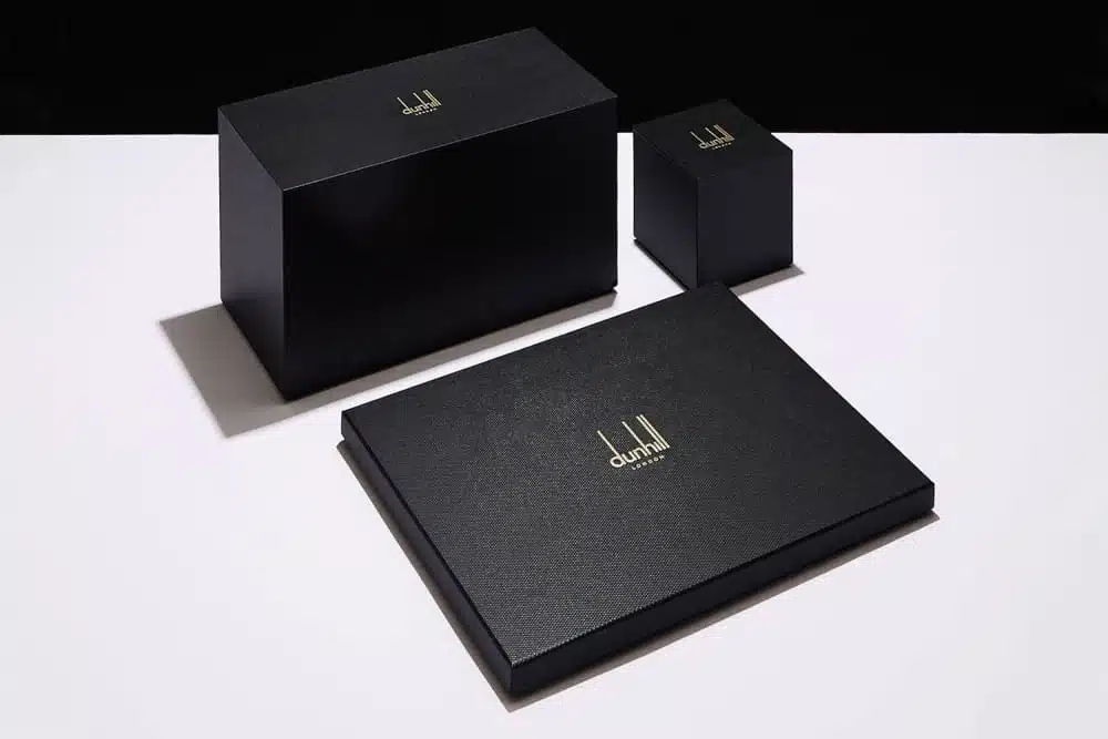 Our custom rigid perfume box solutions focus on both aesthetics and functionality. Using high-quality rigid materials, we create sturdy boxes that shield delicate perfume bottles from damage. The foil-blocked branding enhances the visual appeal, providing a striking contrast that highlights Alfred Dunhill’s signature style. Additionally, customizable finishes, colors, and textures allow brands to align packaging with their identity effortlessly.