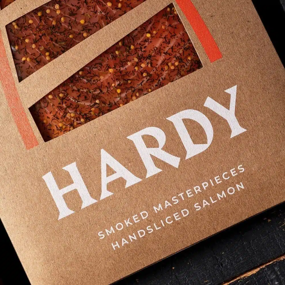 Custom Salmon Packaging plays a key role in seafood branding. For Hardy, this design elevates their smoked salmon from commodity to specialty product. It captures the natural beauty of the fish and introduces a tactile interaction with the consumer—without compromising product integrity.