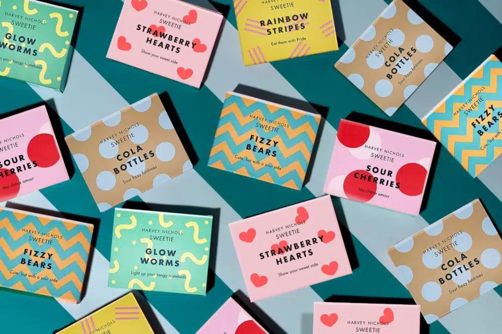 Since 2018, Harvey Nichols has worked on creating bold packaging that reflects both its brand and the playful nature of its treats. Each item tells its own story. Bright colors and quirky graphics give the products charm. This visual identity invites shoppers to explore, collect, and gift the range.