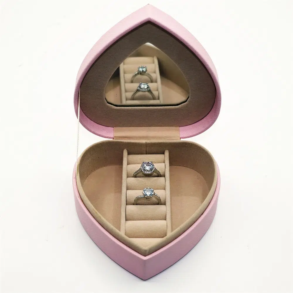 A Pink Heart-Shaped Ring Box is more than just packaging—it’s a symbol of romance and elegance. Designed for engagement rings, wedding bands, and special gifts, this custom leather jewelry box ensures that your jewelry is showcased with sophistication.
